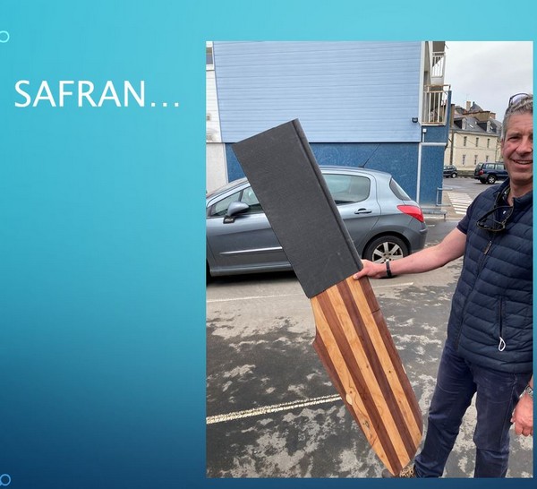 La question du safran n'est toujours pas réglée. Les safrans d'origine sont très lourds. Au fil du temps, les propriétaires ont fait évoluer le safran en réduisant le plus souvent le poids de la tête de safran tout en conservant la pelle pour respecter la jauge. Les derniers essais vont vers le beau et l'efficacité .. à suivre.