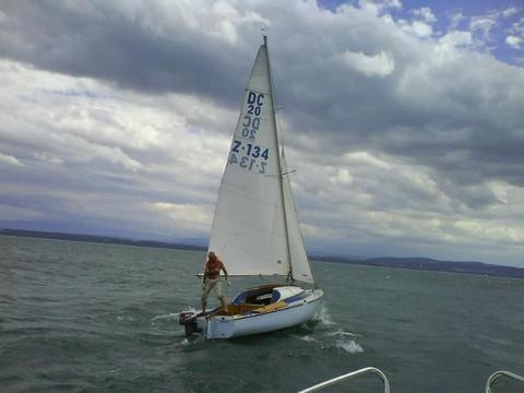 Le DC20 N° 134 "Baladin" Nous avons rencontré Philippe à Bevaix sur le lac de Neuchatel en Suisse lors de l'achat du N°151. Philippe est le propriétaire de Baladin un DC20 Silvant performant. Le N° du bateau n'est pas définitif car s'agissant d'un DC20 Silvant de 1964, il devrait disposer d'un N° proche de 30. Le N°134 est plus certainement celui d'une voile acquise par le propriétaire précédent. Baladin a un palmares. Il a gagné le national DC20 à Morat. 26 bateaux étaient au départ. Philippe a mis le bateau à sa main avec notamment de grandes assises et un rangement support de la barre d'écoute de GV très original. |