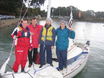 L'équipage de Plijadur ! Vous pouvez cliquer sur cette vue pour la grossir encore et détailler les protagonistes : moi, jacky mon frère, Pascal le N°1 et Micky l'homme volant ce jour là !