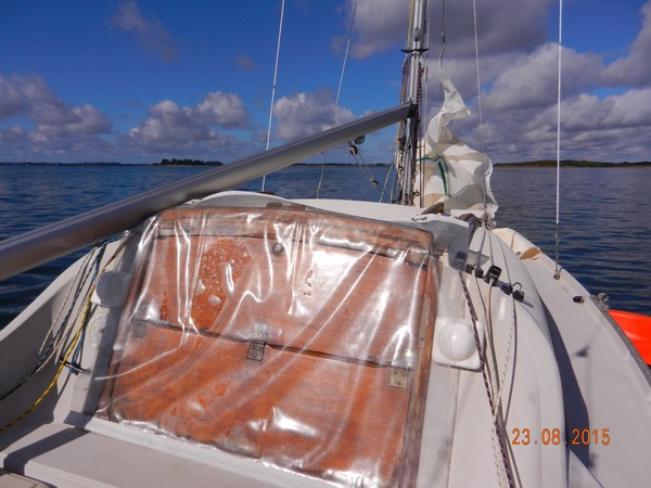 La porte permet de naviguer avec un peu de pluie sans mouiller l'intérieur de la cabine. Au ponton, elle est bien pratique et rend